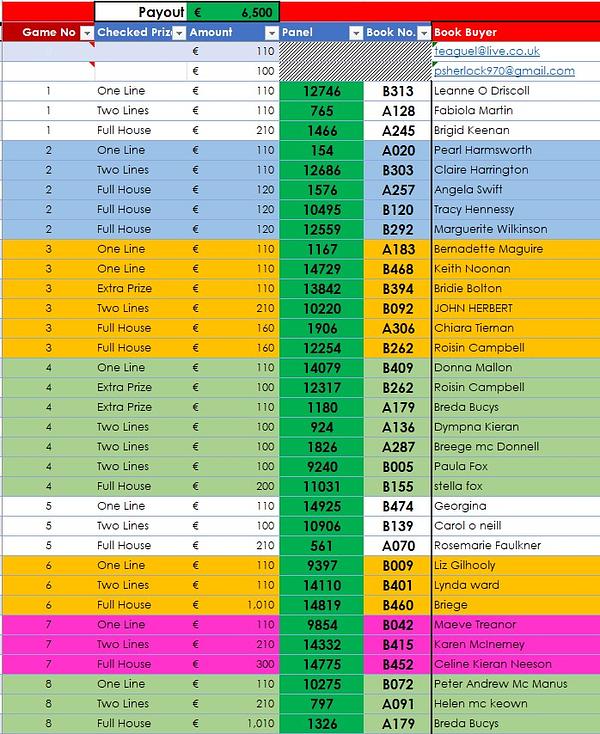 To claim your prize email info@seansbingo.com from the email address that purchased the winning book with your 22 Digit IBAN to claim your prize.